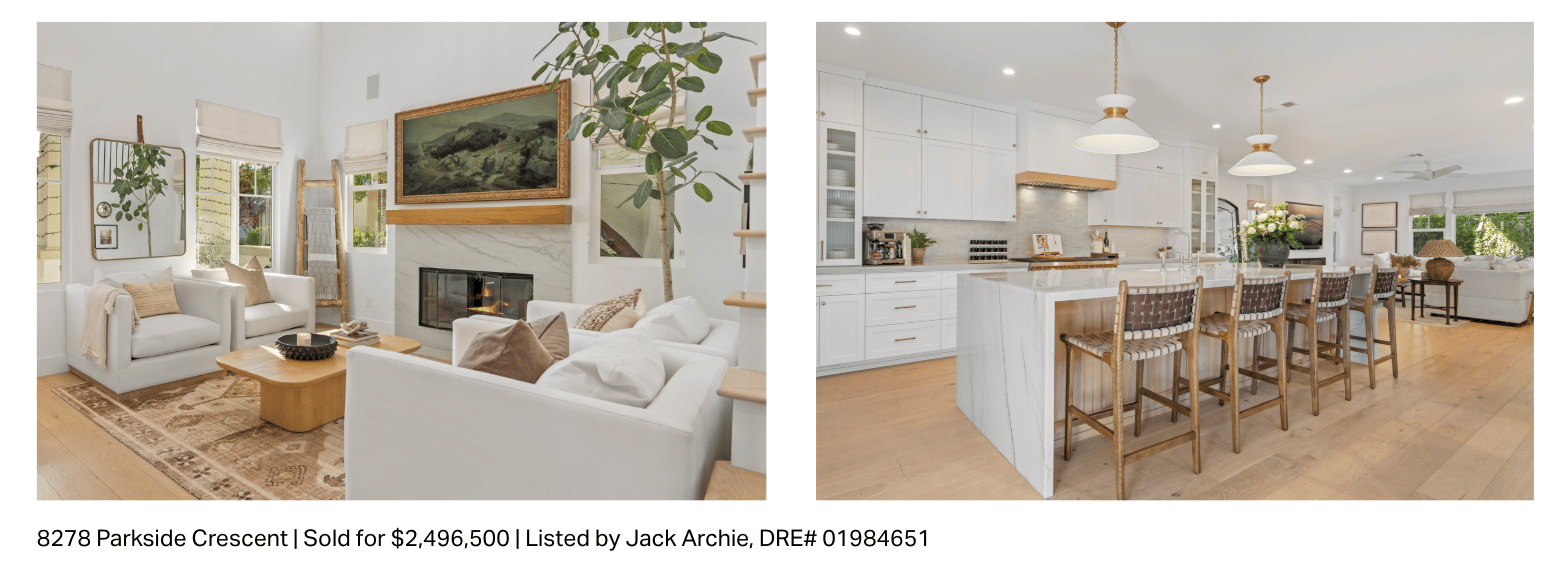 One of Jack’s standout achievements in the Del Sur market was the recent sale of 8278 Parkside Crescent. This stunning 4-bed, 3.5-bath remodel in Kensington at Del Sur sold for $2,496,500, showcasing Jack’s ability to maximize value for his sellers through expert positioning and negotiation.