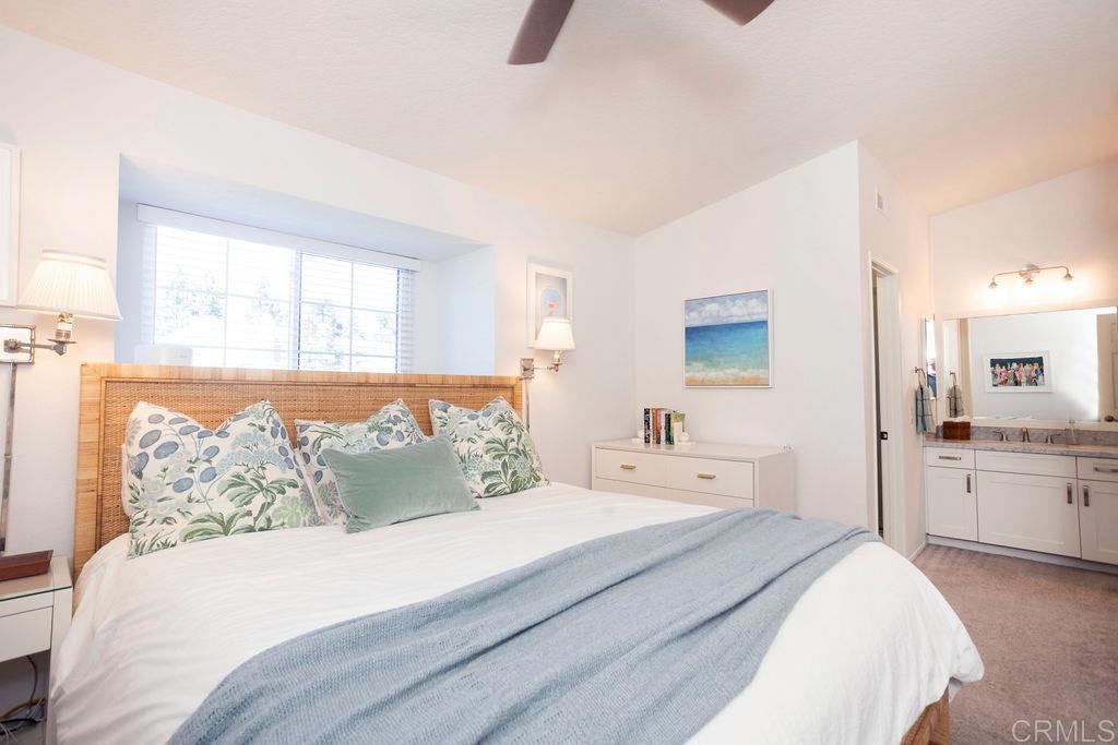 Beautifully upgraded cul de sac home in the desirable Coral Cove community of Carmel Valley, set on a premium lot across from the park. A gated courtyard welcomes you to a light-filled interior with vaulted ceilings and hardwood floors. The open living room with a wood burning gas fireplace creates a warm, relaxed setting, while sliding doors connect seamlessly to the private patio. Recent improvements add modern comfort: a 2022 kitchen remodel with a new range, a refreshed powder room (2022), new window treatments and blinds (2023), and a brand-new AC and furnace (2024). Upstairs, an updated stair railing leads to three bedrooms, including a primary suite with quartz counters, a new vanity, and a walk-in shower. An attached two-car garage provides convenience, and Coral Cove residents enjoy a resort-style pool, spa, clubhouse, playground, tennis, pickleball, and a walking path that reaches Del Mar Highlands or One Paseo in about 10 minutes. All within walking distance to top-rated schools, shopping, dining, golf, and the beautiful Del Mar beaches, with easy I-5 and Hwy 56 access.