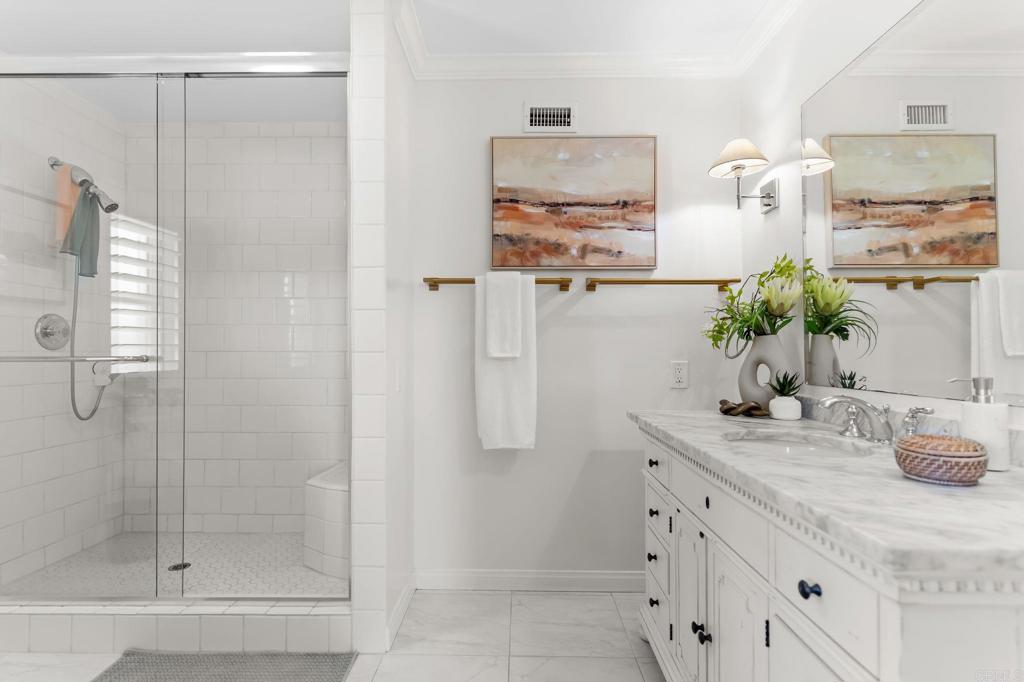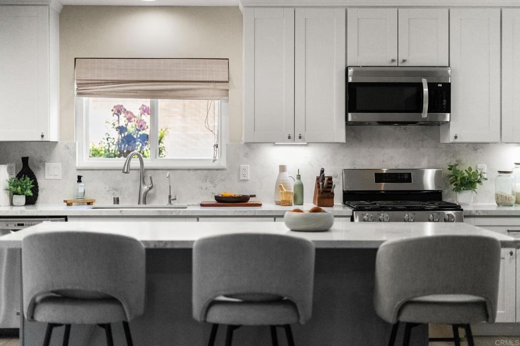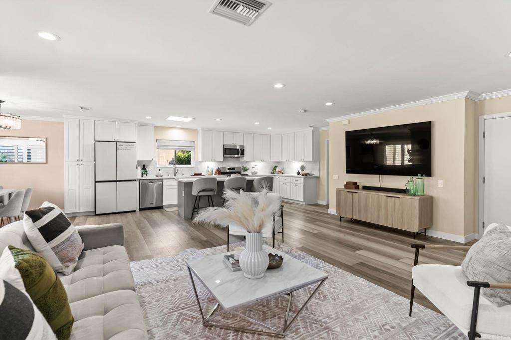 Light, bright, and fully updated single-level home in the highly sought-after Rancho Bernardo Greens. Recently renovated with a new kitchen, beautifully updated bathrooms, new hardwood flooring, and a new electrical panel ready for future solar--offering a true move-in ready opportunity. The functional layout includes 3 bedrooms, 2 remodeled baths, and a detached bonus office (equipped with AC and hardwired high speed internet ) -- ideal for remote work, creative space, or added flexibility. The spacious living room features a cozy fireplace, abundant natural light, and seamless indoor-outdoor flow through sliding doors to the backyard. The open-concept kitchen is designed for both everyday living and entertaining, flowing effortlessly into the dining and family areas. It showcases modern finishes, new cabinetry, stainless steel appliances, and a large island that serves as the natural gathering space. The owner especially loves the openness of the kitchen and the direct views out to the backyard, creating a strong connection between indoor and outdoor living. The private backyard offers west-facing mountain views, mature landscaping, and fruit trees including kumquat, lemon, and apple--an inviting setting for relaxing or hosting. Set on an approximately 10,000 sq ft lot in an all-ages community (not 55+), this home offers excellent walkability--just minutes to the Rancho Bernardo Swim & Tennis Club and a nearby preschool. Residents enjoy access to pools, tennis, pickleball, fitness center, playgrounds, and community events, with golf, shopping, dining, trails, and major employers all close by. Located within the award-winning Poway Unified School District.