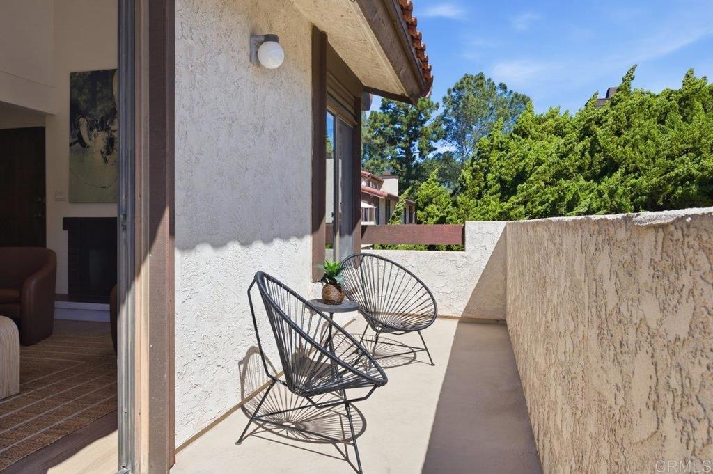 Welcome to this beautifully renovated top-floor corner Del Mar condo, offering exceptional privacy, abundant natural light, and a quiet, interior unit location. Thoughtfully updated throughout, the home features a modern kitchen with quartz countertops, new plumbing fixtures, and upgraded appliances including a new dishwasher, range, and sleek slim-line microwave. The bathroom has been refreshed with a new shower and tub enclosure, while additional upgrades include new flooring, fresh interior paint, stylish light fixtures, and recessed can lighting. The oversized living room creates a bright and inviting space, perfect for both relaxing and entertaining. Additional highlights include in-unit laundry hookups, a single-car garage, and recently serviced heaters paired with new thermostats for added comfort and efficiency. One of the most unique features of this home is the expansive attic space, offering an incredible opportunity to create a loft above the kitchen and dining area--ideal for a home office, guest space, or additional living area. Combining modern upgrades, functional living, and a serene atmosphere, this Del Mar condo is a rare opportunity to enjoy coastal living in a highly desirable location.