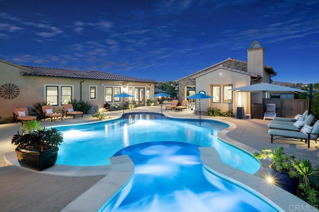 PRICED TO SELL! Welcome to Artesian Estates, the epitome of luxurious living in an exclusive gated community. This fully furnished single-level masterpiece seamlessly blends indoor elegance with San Diego's stunning outdoors, boasting panoramic canyon and mountain views. With 4 bedrooms and 4.5 bathrooms in the main home, plus a detached guest house with 1 bedroom, 1 bathroom, a mini kitchen, washer/dryer hookups, and a living area, this residence caters to both comfort and entertainment. Situated on an extra-large lot, this lightly lived-in home provides a serene retreat from life's hustle and bustle. Equipped with 24 owned solar panels powering the residence and additional panels for the saltwater pool, it embodies sustainability and modern efficiency. Experience unparalleled upgrades, including a top-of-the-line internet system, a 10-speaker indoor/outdoor sound system, and a 6-camera security system with glass break and door sensors. Enjoy everyday comforts with a full house water filtration system, reverse osmosis in the kitchen, and room darkening blinds and shutters in every room. Step outside to a resort-like oasis with a built-in outdoor kitchen, BBQ, bar seating, and a spa and pool featuring a Baja ledge. This turn-key dream home awaits those who appreciate sophistication and modern living in one of San Diego's most exclusive communities. Your exquisite lifestyle begins at Artesian Estates!