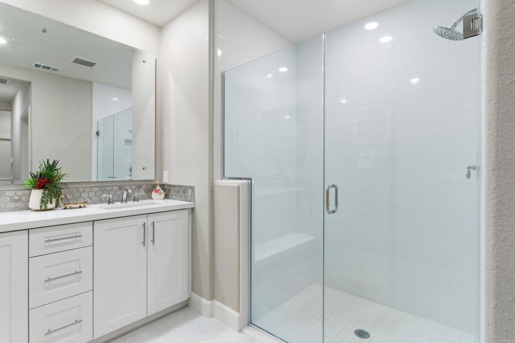 Light and bright single level townhome in the gated Avante 55+ community. Featuring 2 bedrooms and 2 full baths, this beautifully updated ground floor home offers beautiful views to the North and a spacious open floor plan filled with natural light. With $40,000 in builder upgrades, including new flooring, window treatments, and backsplashes in the kitchen and bathrooms, it's move-in ready. Enjoy the Southern California lifestyle with all the amenities that Avante offers: a private clubhouse, heated pool, jacuzzi, fire pit, spacious gym, social activities, and two BBQ areas. The Del Sur Town Center, with Target, Sprouts, Luna Grill, Chick-Fil-A, and more, is within walking distance for all your retail and social needs. This townhome perfectly blends comfort, convenience, and community living.