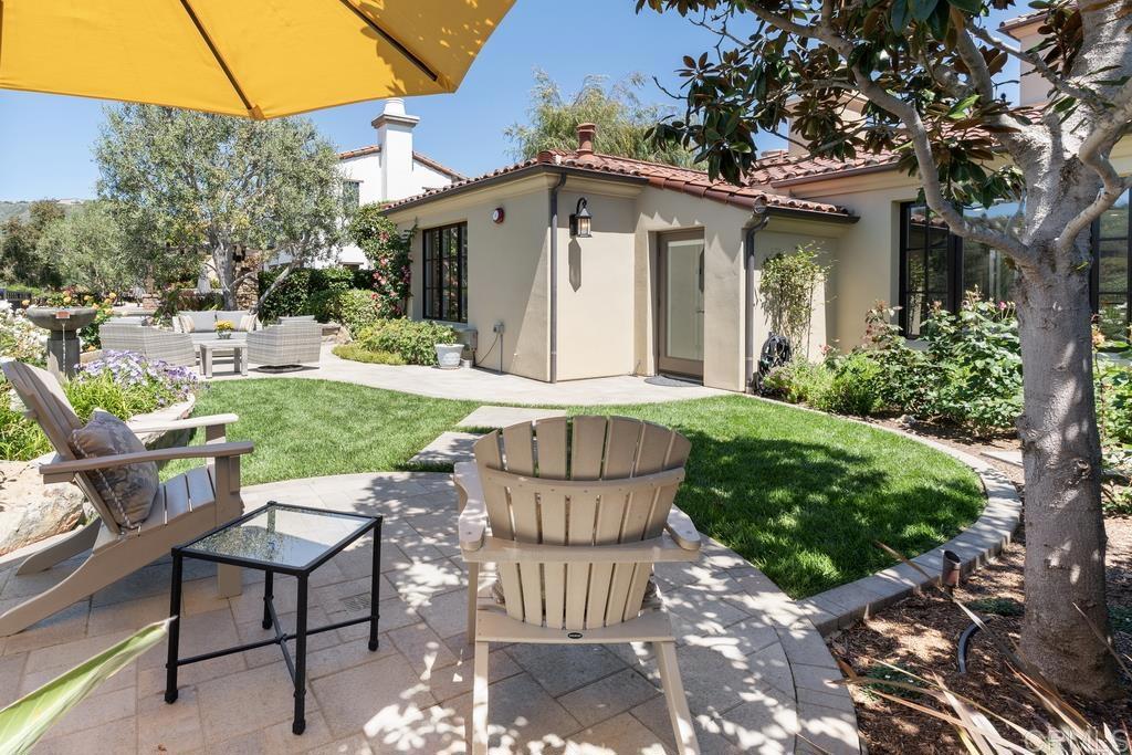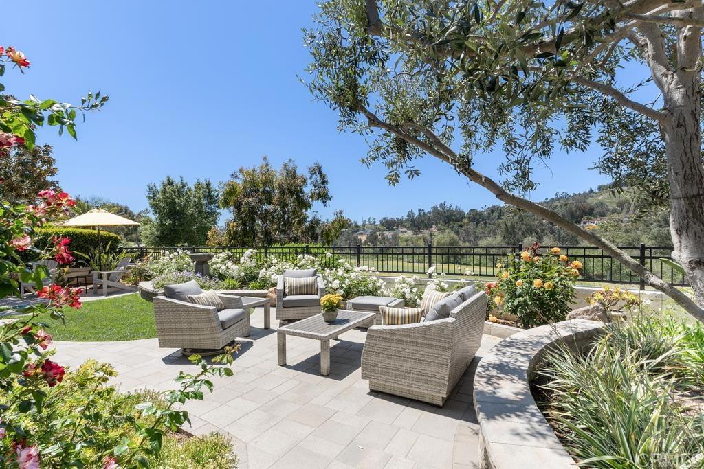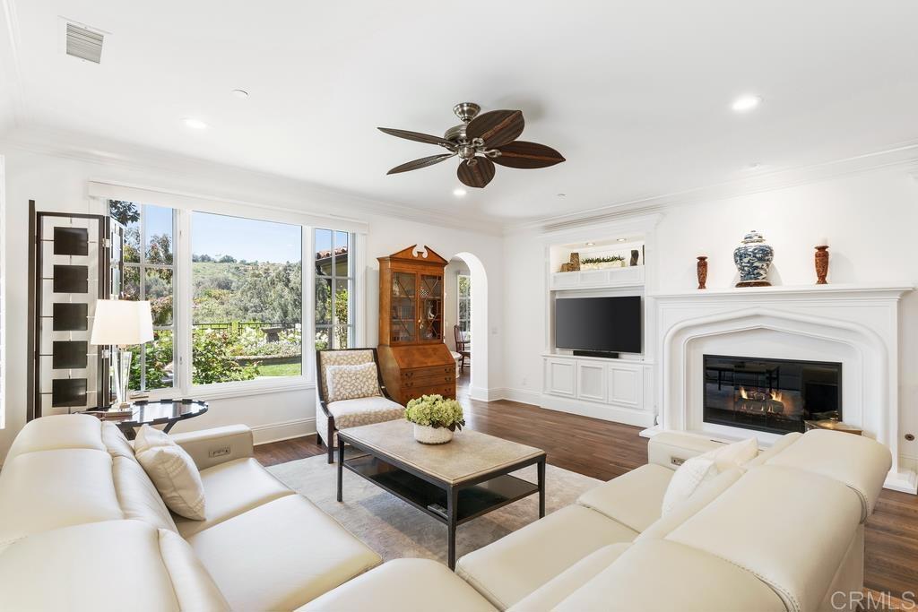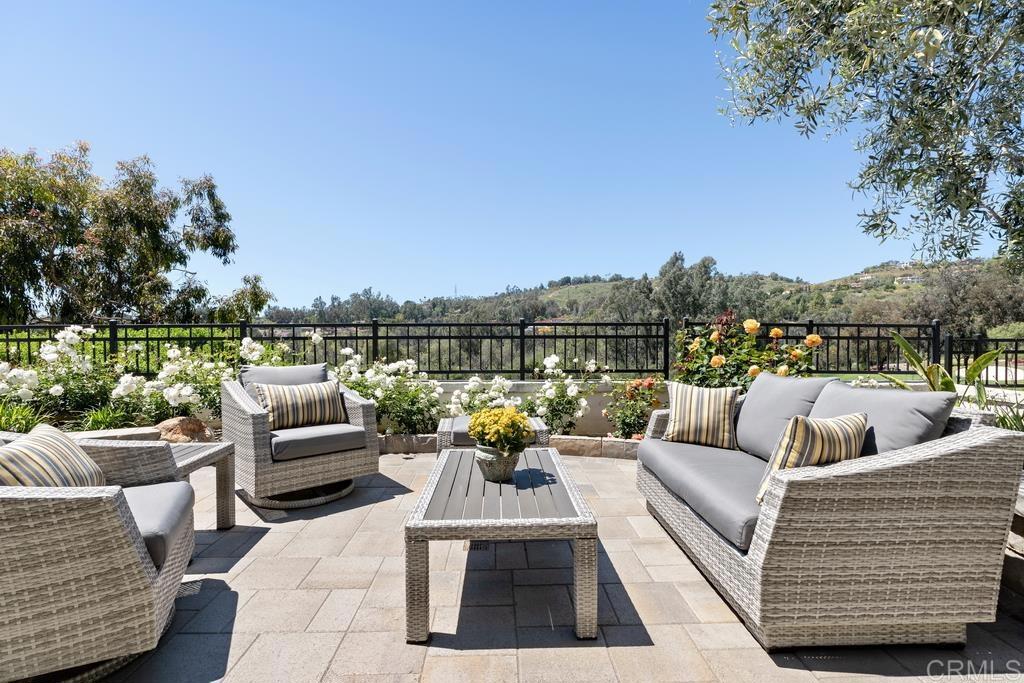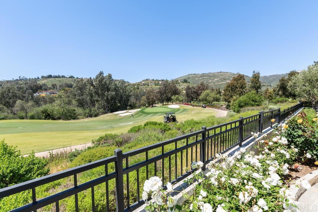 Nestled within the gates of the exclusive 24/7 guard-gated Crosby at Rancho Santa Fe, this stunning 3 bedroom, 2.5 bath Plan 1 Villa offers the primary bedroom on the first floor and gorgeous views of the 15th fairway! As you enter, you will find a flex room, ideal for an office or additional bedroom. Soaring ceilings and the warmth of rich hardwood floors lead you to the heart of the home. The gourmet kitchen is a chef's delight boasting stunning quartz counters, an Italian faucet, and complemented by top-of-the-line Thermador and Subzero appliances, ensuring culinary excellence and sophistication. The primary bedroom, conveniently located on the first floor, provides a serene retreat; the fully remodeled bathroom suite offers a spa-like experience complete with marble counters & backsplash, and Italian flooring. The spacious bedroom on the second level has golf course views, and the third level is a beautiful loft, perfect as an additional living space, office, or kid's room. Enjoy alfresco dining in the courtyard complete with a cozy fireplace. The backyard is low maintenance and perfect for entertaining! An oasis with gorgeous views overlooking famed Crosby Golf Course. This property offers incredible walkability to the sports center with a state-of-the-art gym, lap pool, gourmet restaurant, pickleball, and tennis courts, plus award-winning 18-hole golf, and casual and formal dining; available with sports club membership options. The Crosby is within the highly acclaimed Solana Beach School District and San Dieguito High School District. A "shelter-in-place" community. Sewer Connected Topography: LL