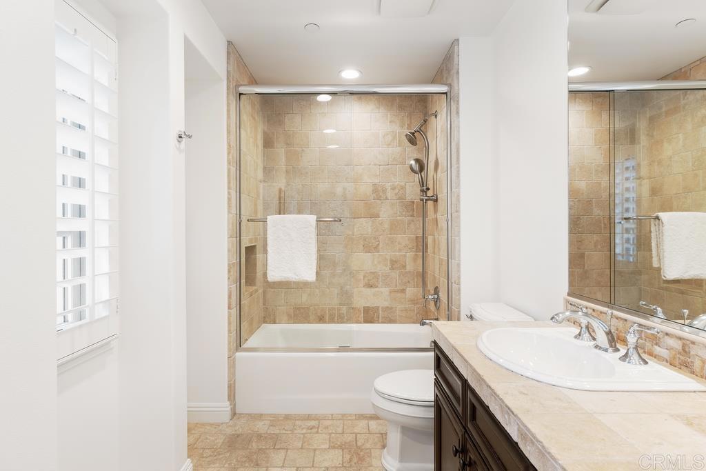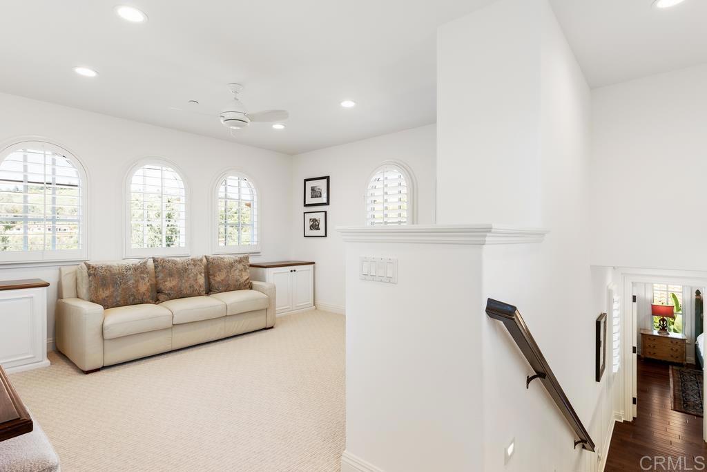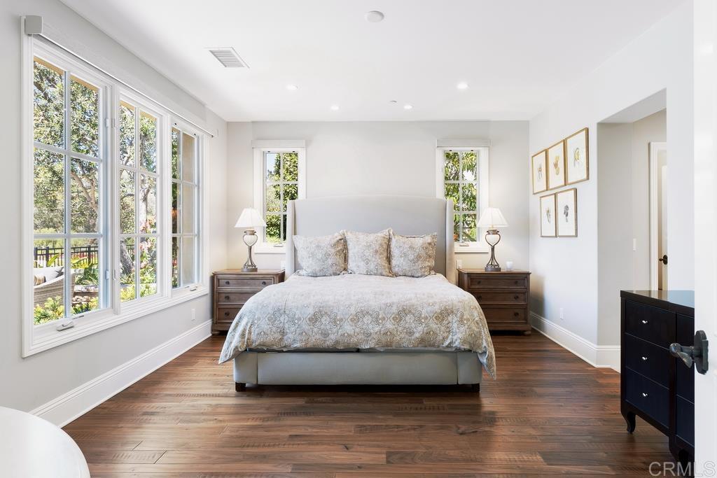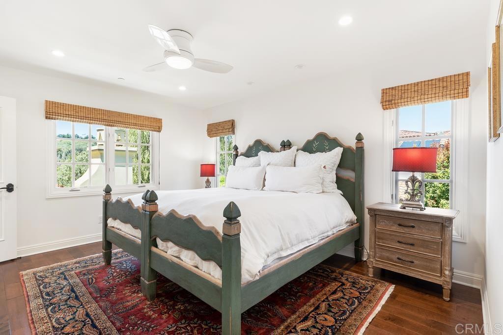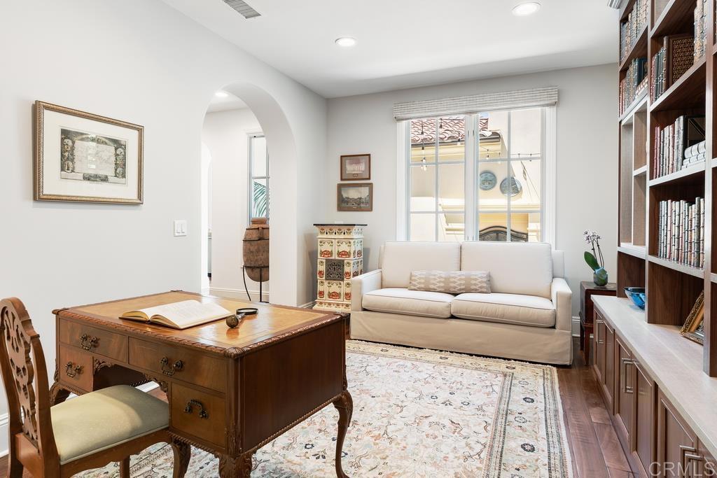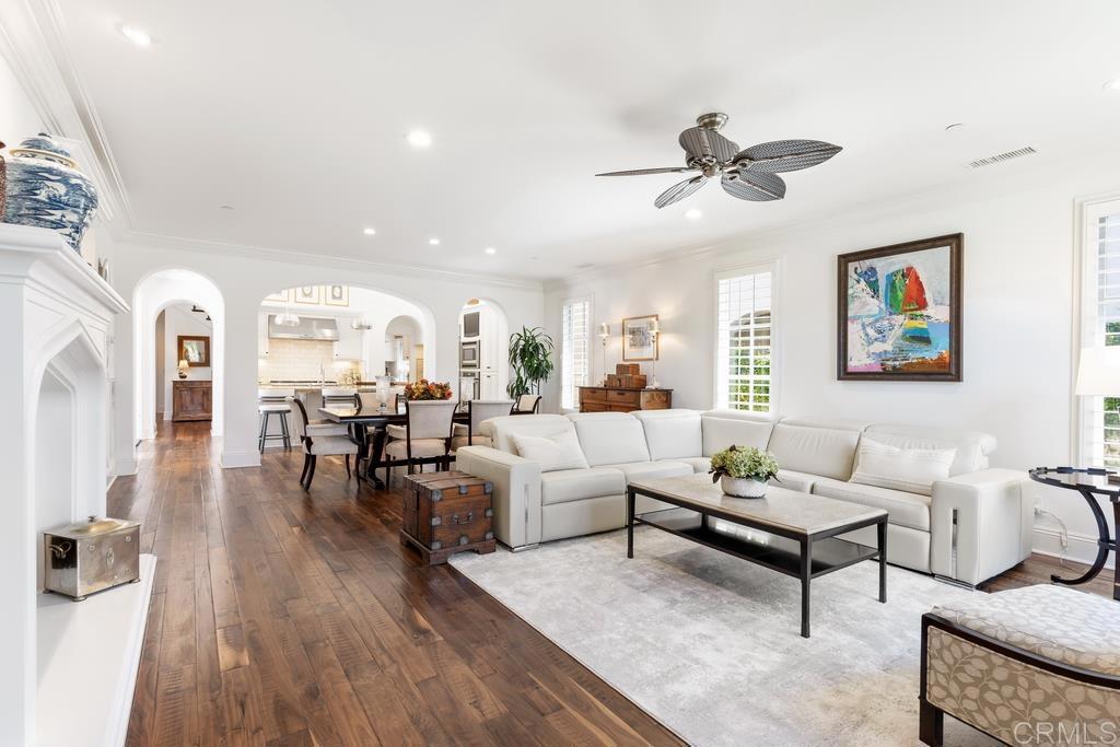 Nestled within the gates of the exclusive 24/7 guard-gated Crosby at Rancho Santa Fe, this stunning 3 bedroom, 2.5 bath Plan 1 Villa offers the primary bedroom on the first floor and gorgeous views of the 15th fairway! As you enter, you will find a flex room, ideal for an office or additional bedroom. Soaring ceilings and the warmth of rich hardwood floors lead you to the heart of the home. The gourmet kitchen is a chef's delight boasting stunning quartz counters, an Italian faucet, and complemented by top-of-the-line Thermador and Subzero appliances, ensuring culinary excellence and sophistication. The primary bedroom, conveniently located on the first floor, provides a serene retreat; the fully remodeled bathroom suite offers a spa-like experience complete with marble counters & backsplash, and Italian flooring. The spacious bedroom on the second level has golf course views, and the third level is a beautiful loft, perfect as an additional living space, office, or kid's room. Enjoy alfresco dining in the courtyard complete with a cozy fireplace. The backyard is low maintenance and perfect for entertaining! An oasis with gorgeous views overlooking famed Crosby Golf Course. This property offers incredible walkability to the sports center with a state-of-the-art gym, lap pool, gourmet restaurant, pickleball, and tennis courts, plus award-winning 18-hole golf, and casual and formal dining; available with sports club membership options. The Crosby is within the highly acclaimed Solana Beach School District and San Dieguito High School District. A "shelter-in-place" community. Sewer Connected Topography: LL