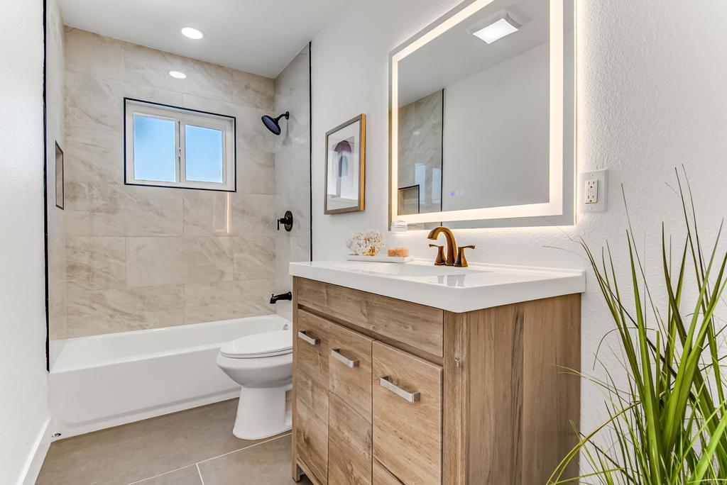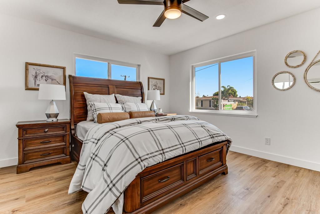 Nestled in the heart of Serra Mesa, this beautifully updated 4-bedroom, 2-bath home offers space, style, and convenience. The bright and airy layout features a serene primary suite with a custom-tiled bath, upgraded bathrooms, and new luxury vinyl flooring throughout. Gather in the inviting living room, centered around a sleek, updated, wood-burning fireplace, or entertain in the open kitchen with a spacious island and new appliances. The expansive family room flows seamlessly to a private backyard with a covered patio--perfect for outdoor relaxation. Recent upgrades include a new HVAC system, ceiling fans in most bedrooms, and an epoxied two-car garage with ample storage and laundry hookups. A large driveway fits up to four vehicles. Enjoy easy access to top schools, Snapdragon Stadium, Sandrock Canyon Park, and the best dining and shopping in Mission Valley and Convoy. With quick freeway access, downtown, the beaches, and Balboa Park are just minutes away. Experience the perfect blend of community charm and city convenience in Serra Mesa!