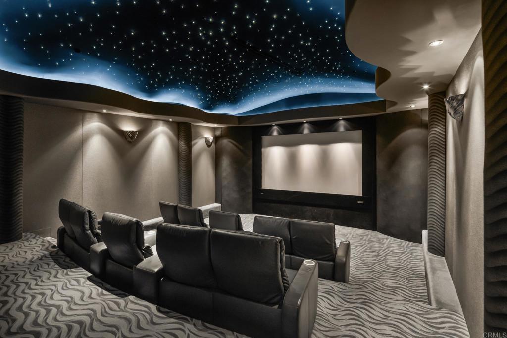 Set behind the prestigious gates of Fairbanks Ranch, this extraordinary contemporary estate is a true architectural statement--where modern design, natural beauty, and absolute privacy converge on a scale rarely found in coastal North County. Privately positioned at the end of a quiet cul-de-sac on over 8.6 acres, the property captures sweeping, unobstructed views across the San Dieguito River Valley--offering a sense of serenity and openness that feels worlds away, yet remains just minutes from Rancho Santa Fe and Del Mar. The 12,745-square-foot residence showcases striking contemporary architecture defined by clean lines, dramatic volumes, and walls of glass that dissolve the boundary between indoors and out. Designed to embrace its surroundings, the home is filled with natural light, with expansive floor-to-ceiling doors and open-concept living spaces that create a seamless, effortless flow throughout. Sophisticated materials, including curated marble and granite finishes, add warmth and refinement to the modern aesthetic. Thoughtfully designed for both everyday living and grand-scale entertaining, the home features six spacious bedrooms, a luxurious primary retreat with spa-inspired bath and steam shower, dual executive offices, and a chef's kitchen equipped with commercial-grade appliances and an oversized walk-in pantry. A full suite of resort-caliber amenities elevates the experience--highlighted by a 14-seat theater, indoor fitness pool with endless current, indoor spa, wine cellar, art studio, and a dramatic 1,000-gallon aquarium that serves as a living work of art. The outdoor environment rivals a private resort. An infinity-edge pool and spa anchor the grounds, complemented by expansive view decks, an indoor-outdoor cabana, multiple entertaining areas with BBQs and fire features, a putting green, bocce court, and a mature fruit orchard. With ample space and zoning for horses--an uncommon offering within Fairbanks Ranch--the estate delivers both luxury and versatility. Complete with smart-home integration, solar energy system, and a four-car garage, the property also offers convenient access to Fairbanks Ranch's premier amenities, including the lake, clubhouse, tennis and pickleball courts, and scenic walking trails. This is a rare opportunity to own one of Fairbanks Ranch's most architecturally significant contemporary estates--where privacy, design, and lifestyle align in a truly unforgettable setting.