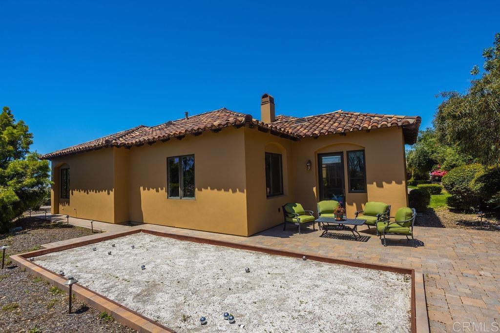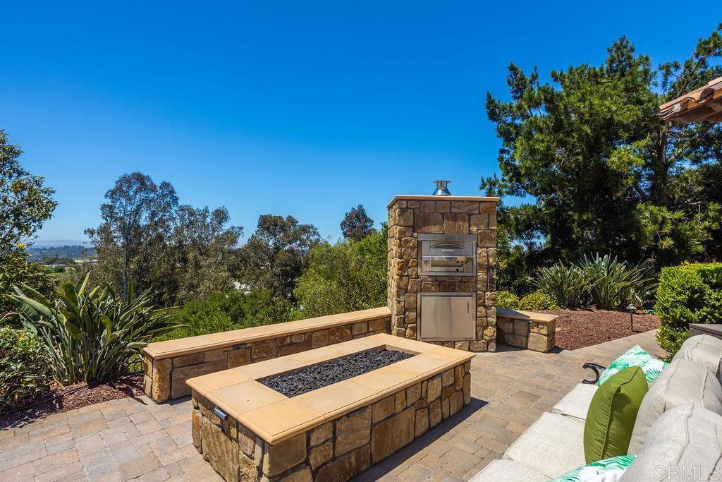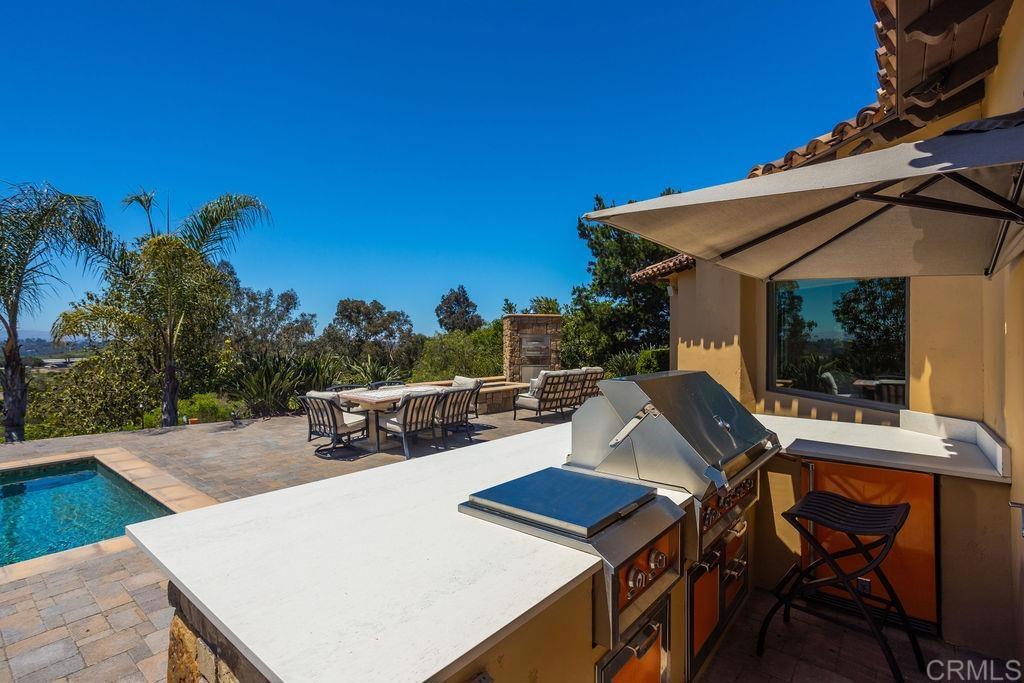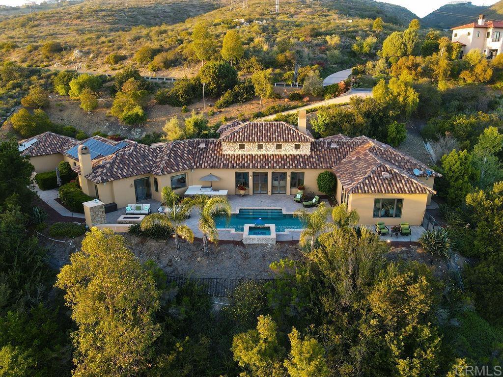 Perched atop the hills of Rancho Santa Fe's exclusive guard-gated community of Cielo, this stunning single-level custom estate blends timeless design with modern luxury, offering the perfect setting for elevated family living. Featuring 4 spacious bedrooms and 3.5 beautifully appointed baths, this thoughtfully designed residence offers a seamless, open-concept floor plan ideal for both everyday comfort and effortless entertaining. Recent upgrades include over $400,000 in outdoor enhancements, such as brand-new pavers, a luxury outdoor kitchen with premium Heston appliances, a professional-grade pizza oven, resurfaced pool with new tile, and multiple gathering areas designed for indoor-outdoor living. The interior has been completely repainted and features soaring vaulted ceilings, granite countertops, wrought iron accents, and abundant natural light throughout. The chef's kitchen has been upgraded with top-of-the-line appliances, including a Sub-Zero refrigerator, Wolf double ovens, and a Wolf gas range, making it a true culinary centerpiece. Sustainability meets convenience with a fully owned Sunrun solar system, complete with a dual battery backup for enhanced energy independence. Located within the highly sought-after Rancho Santa Fe School District (Roger Rowe), this rare single-story gem also enjoys access to Cielo's resort-style amenities--just a short stroll from the home--including a clubhouse, fitness center, tennis and pickle ball courts, pool, and scenic parks. A true luxury family retreat in one of Rancho Santa Fe's most desirable communities.