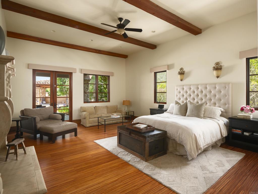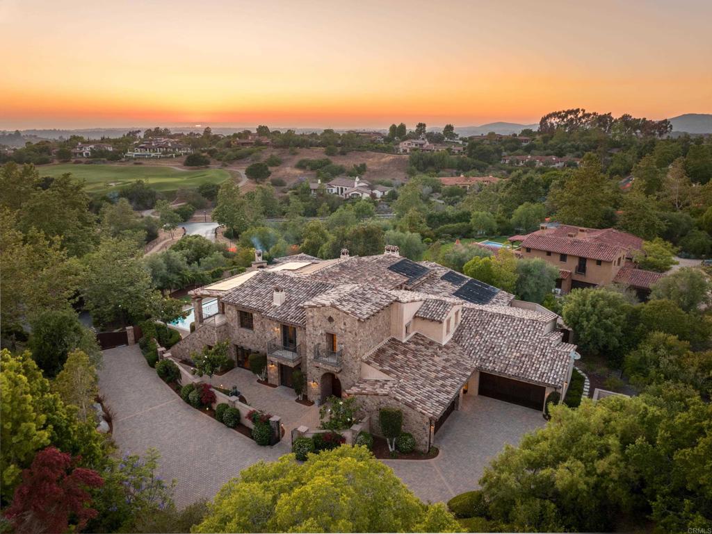 Welcome to this exceptional Henry Penner-built estate, privately gated within the prestigious Santaluz community. Thoughtfully designed for luxurious living and grand entertaining, this four-bedroom plus office residence features a seamless open floor plan and refined, timeless finishes throughout. The expansive great room flows to a built-in bar, perfect for gatherings, while the formal dining room offers an elegant space for special occasions. Movie nights transform into a cinematic experience in your private eight-seat theatre. The heart of the home is the gourmet kitchen, complete with a Wolf oven and range, Subzero refrigerator, Bosch dishwasher, and an adjacent prep kitchen-ideal for effortless hosting and everyday functionality. The main level offers two spacious bedrooms, while upstairs includes two additional bedrooms and a generous entertaining room with its own mini kitchen. Retreat to the main-level primary suite featuring a spa-like bath, outdoor spa on a private patio, and a walk-in closet with its own mini washer and dryer for added convenience. Additional highlights include a dedicated office, four-car garage, owned solar for the home and pool, and a private gated entry offering exclusivity and security. This is a rare opportunity to own a timeless Santaluz masterpiece, designed for both intimate family living and grand-scale entertaining.