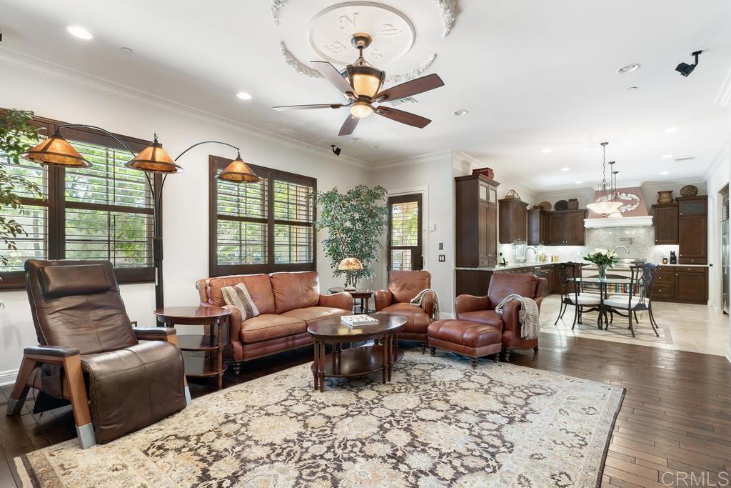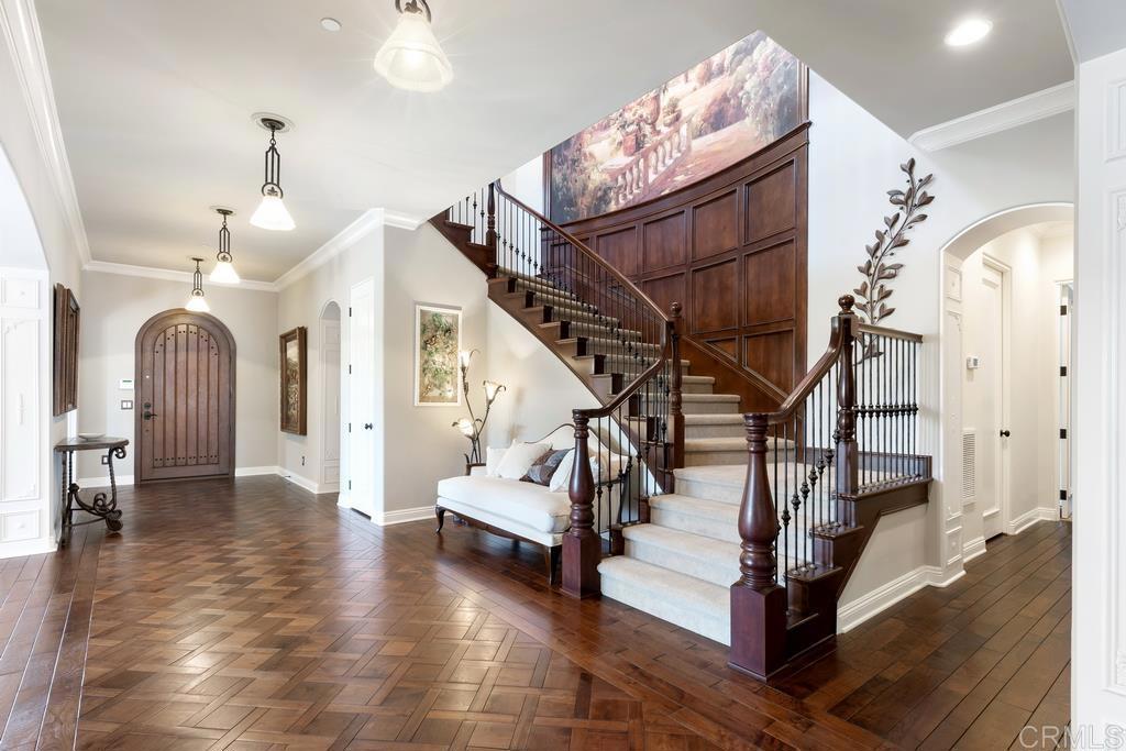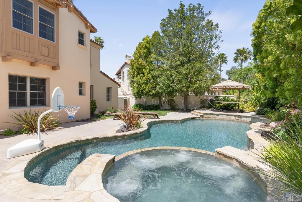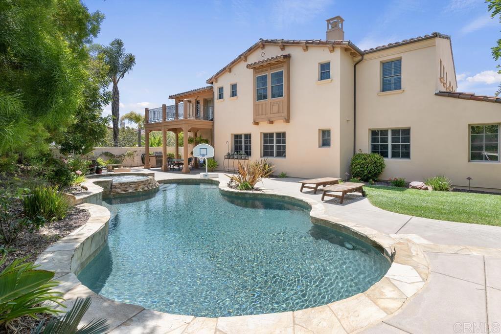 Welcome to 7939 Nathaniel Ct in the Crosby at Rancho Santa Fe, 24 hour guard gated community! Meticulously maintained 5 bedroom plus flex space home spanning over 4735 square feet is nestled at the end of a peaceful cul-de-sac, offering unparalleled privacy and tranquility. Flex space upstairs is perfect for additional office/den/kids area. Original owner showcases a plethora of upgrades that cater to modern living while preserving timeless elegance. Two spacious main level bedrooms, one is currently being used as an office; both are filled with natural light. Gourmet chef's kitchen features top-of-the-line Subzero & Wolf appliances, and custom cabinetry; this kitchen is a chef's delight! Upgrades include rich hardwood floors, wood encased windows and door, custom moldings, plus much more. Upstairs primary suite is a luxurious spa-like retreat including a soaking tub, separate shower and dual vanities. The large walk-in closet is a dream built by California Closets. Two additional bedrooms are generously sized with ample closet space, perfect for a family or additional guests. One bedroom is being used as an office. The yard provides a gorgeous salt water pool & spa in a park-like setting with lush landscaping, mature trees and the perfect space for entertaining! The original owner has lovingly cared for every aspect of this home ensuring it is move-in ready. It's a must see! The Crosby offers optional membership levels the the famed 18-hole golf course, with a complete sports center and gourmet dining options. The Crosby is within the highly desired Solana Beach Elementary and San Dieguito High School Districts. A "shelter-in-place" community.