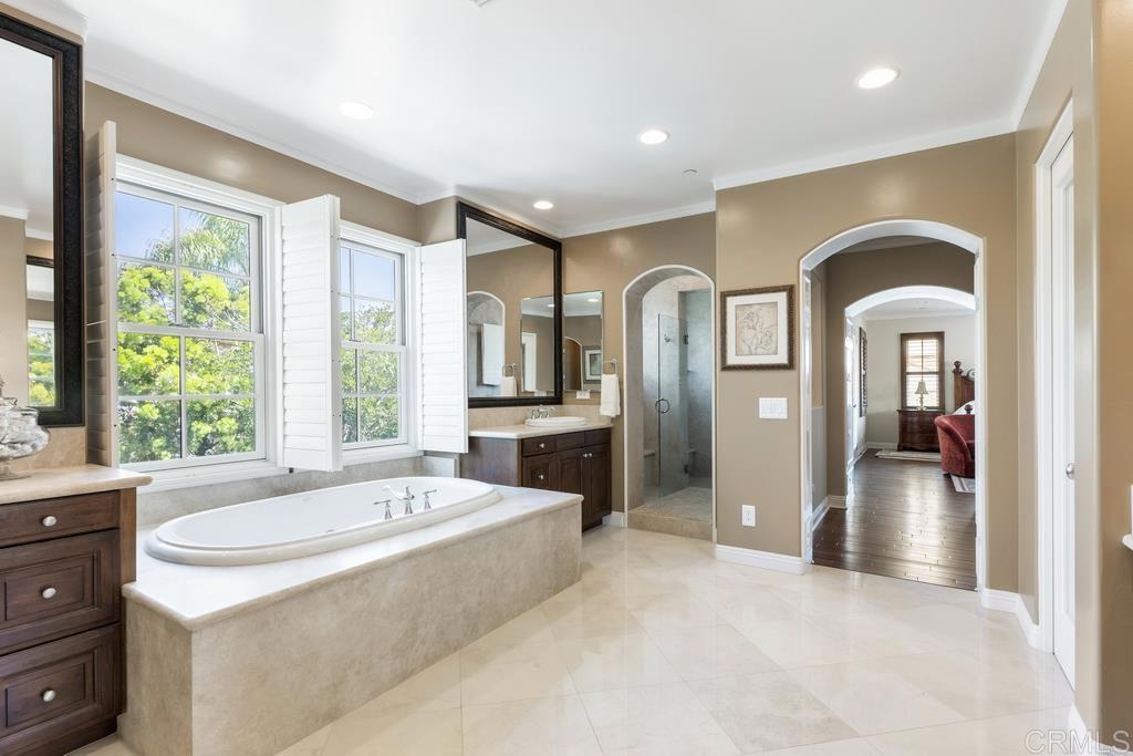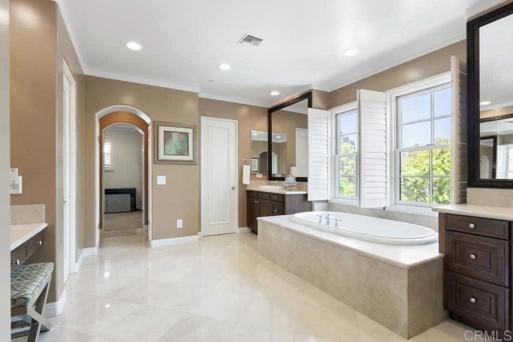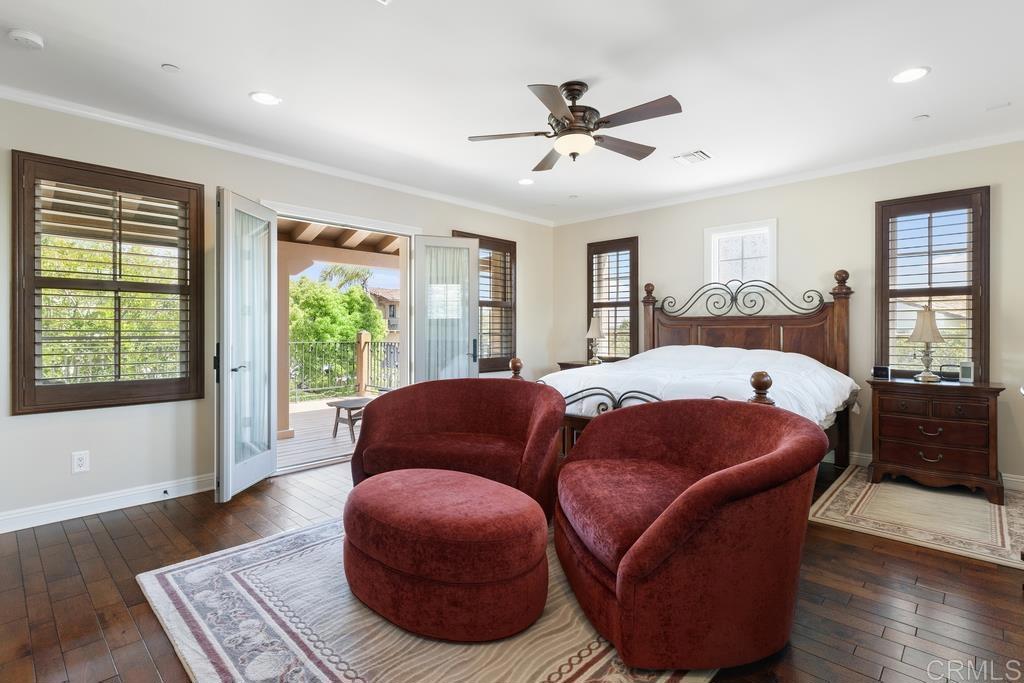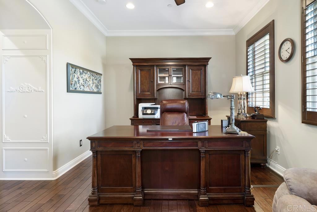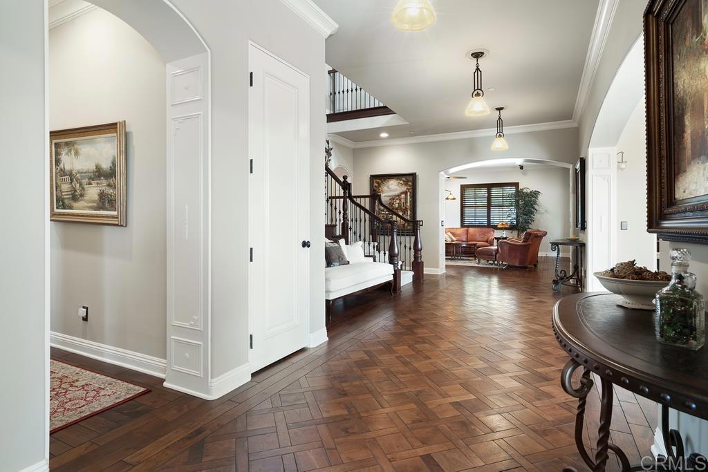 Welcome to 7939 Nathaniel Ct in the Crosby at Rancho Santa Fe, 24 hour guard gated community! Meticulously maintained 5 bedroom plus flex space home spanning over 4735 square feet is nestled at the end of a peaceful cul-de-sac, offering unparalleled privacy and tranquility. Flex space upstairs is perfect for additional office/den/kids area. Original owner showcases a plethora of upgrades that cater to modern living while preserving timeless elegance. Two spacious main level bedrooms, one is currently being used as an office; both are filled with natural light. Gourmet chef's kitchen features top-of-the-line Subzero & Wolf appliances, and custom cabinetry; this kitchen is a chef's delight! Upgrades include rich hardwood floors, wood encased windows and door, custom moldings, plus much more. Upstairs primary suite is a luxurious spa-like retreat including a soaking tub, separate shower and dual vanities. The large walk-in closet is a dream built by California Closets. Two additional bedrooms are generously sized with ample closet space, perfect for a family or additional guests. One bedroom is being used as an office. The yard provides a gorgeous salt water pool & spa in a park-like setting with lush landscaping, mature trees and the perfect space for entertaining! The original owner has lovingly cared for every aspect of this home ensuring it is move-in ready. It's a must see! The Crosby offers optional membership levels the the famed 18-hole golf course, with a complete sports center and gourmet dining options. The Crosby is within the highly desired Solana Beach Elementary and San Dieguito High School Districts. A "shelter-in-place" community.